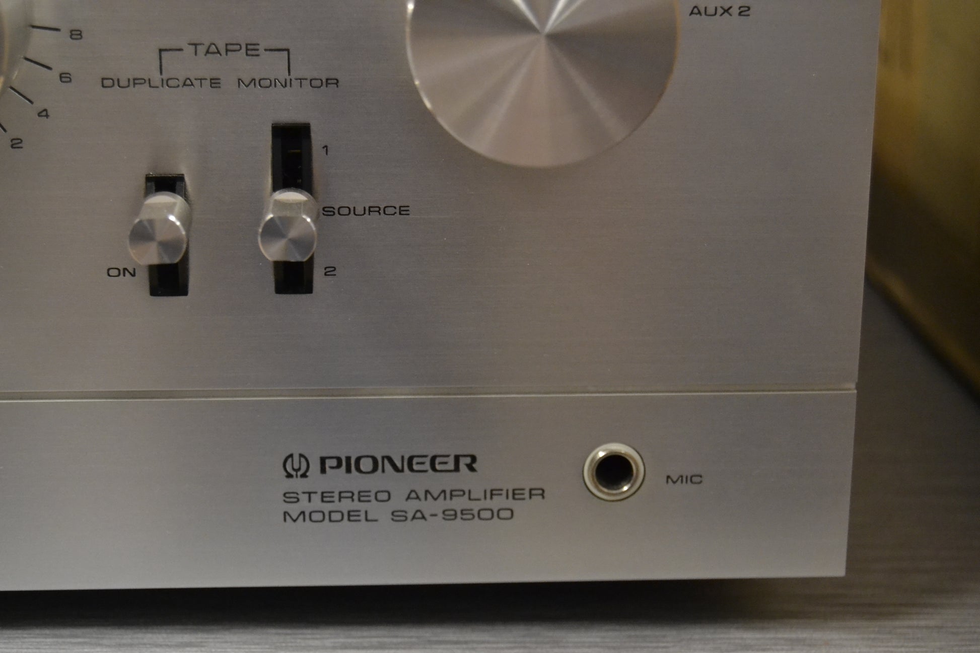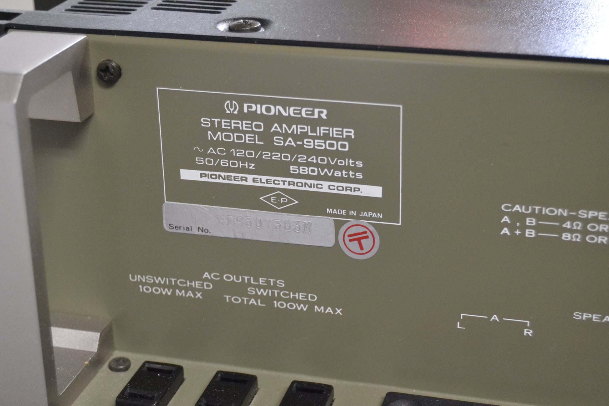 Pioneer believes in music. And if you do, too, you'll find a faithful friend in the new SA-9500; one of the most musically minded pre/main stereo amplifiers we've engineered.