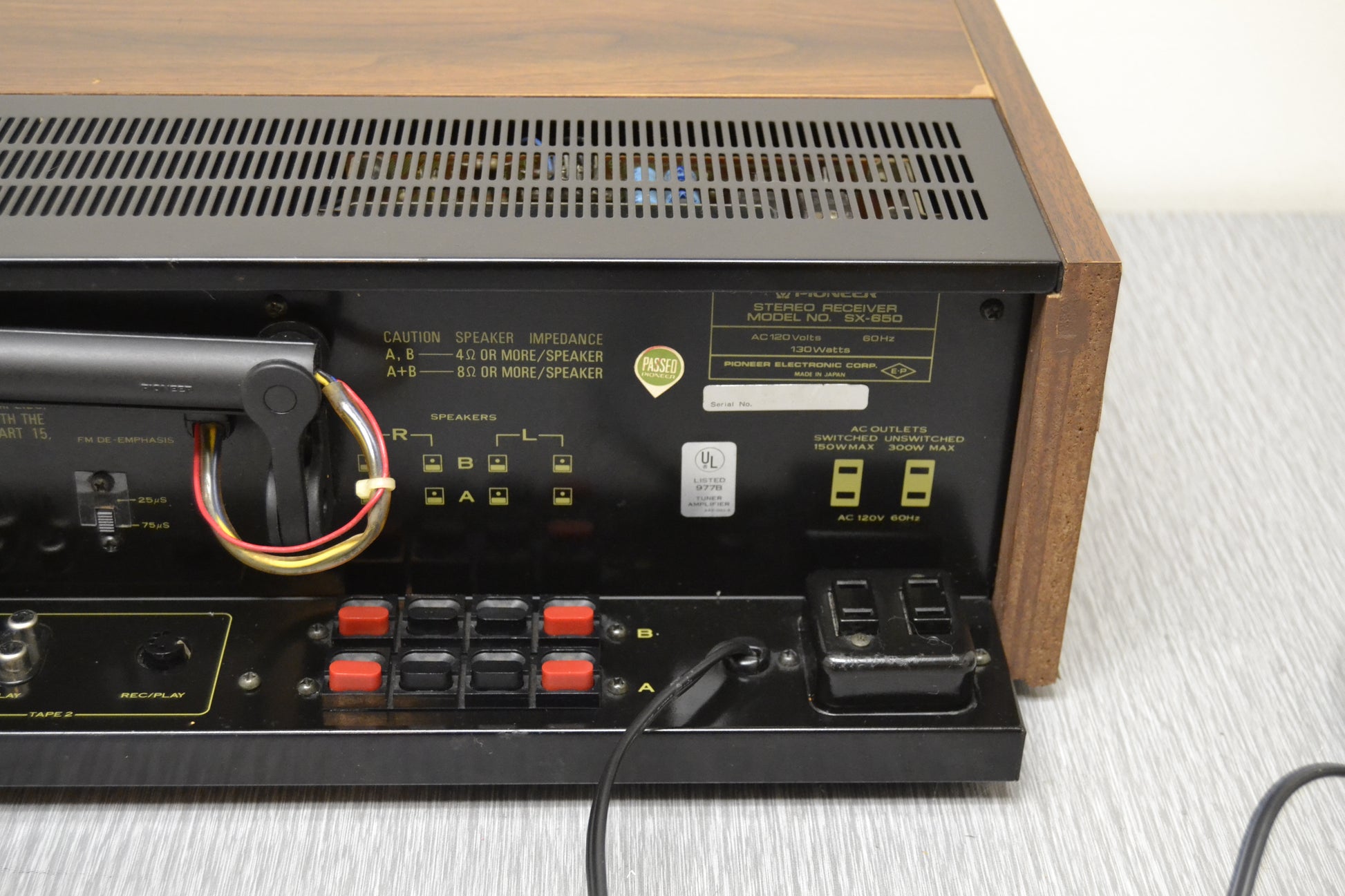 The Pioneer SX-650 has click-stop tone controls with center-defeat positions, a high filter, tape-to-tape dubbing and more. But it saves you money by leaving the frills to more expensive units, concentrating Instead on real preamp performance - such as including a super-quiet phono equalizer with +- 0.3dB RIAA precision and a big 200mV overload for wide dynamic range.