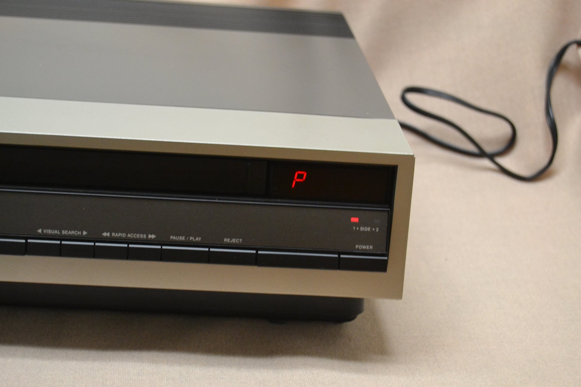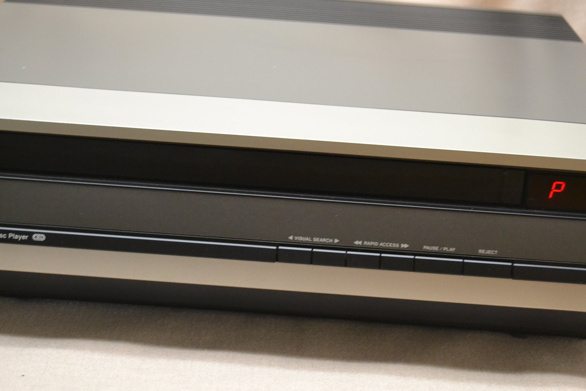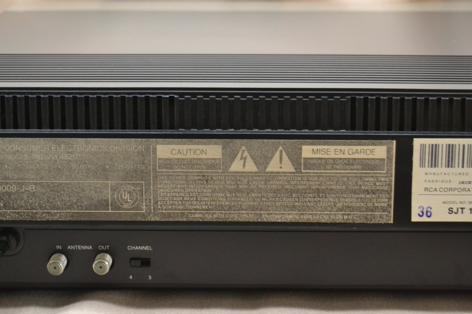 The RCA SJT-100 was a Capacitance Electronic Disc (CED) videodisc player introduced in 1983 with a direct-drive turntable, direct-drive turntable timing (quartz), a motorized load feature, and an RF output. It produced monaural sound, did not have a remote, but featured digital time display, a side display, a blanked search function (120x speed), a repeat mode, and was powered by a 120V, 50/60Hz source, consuming 25W
