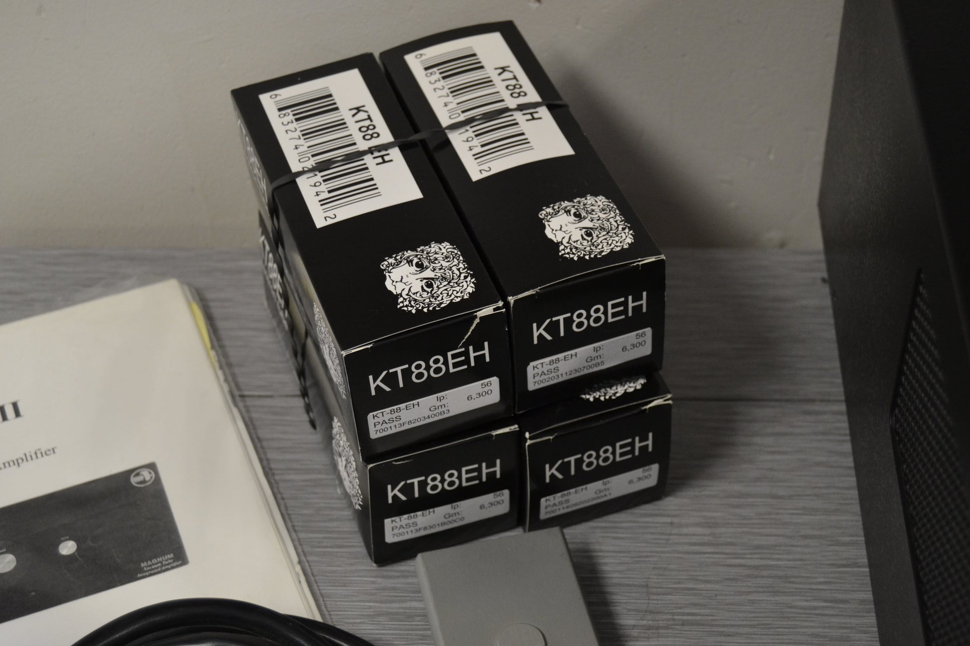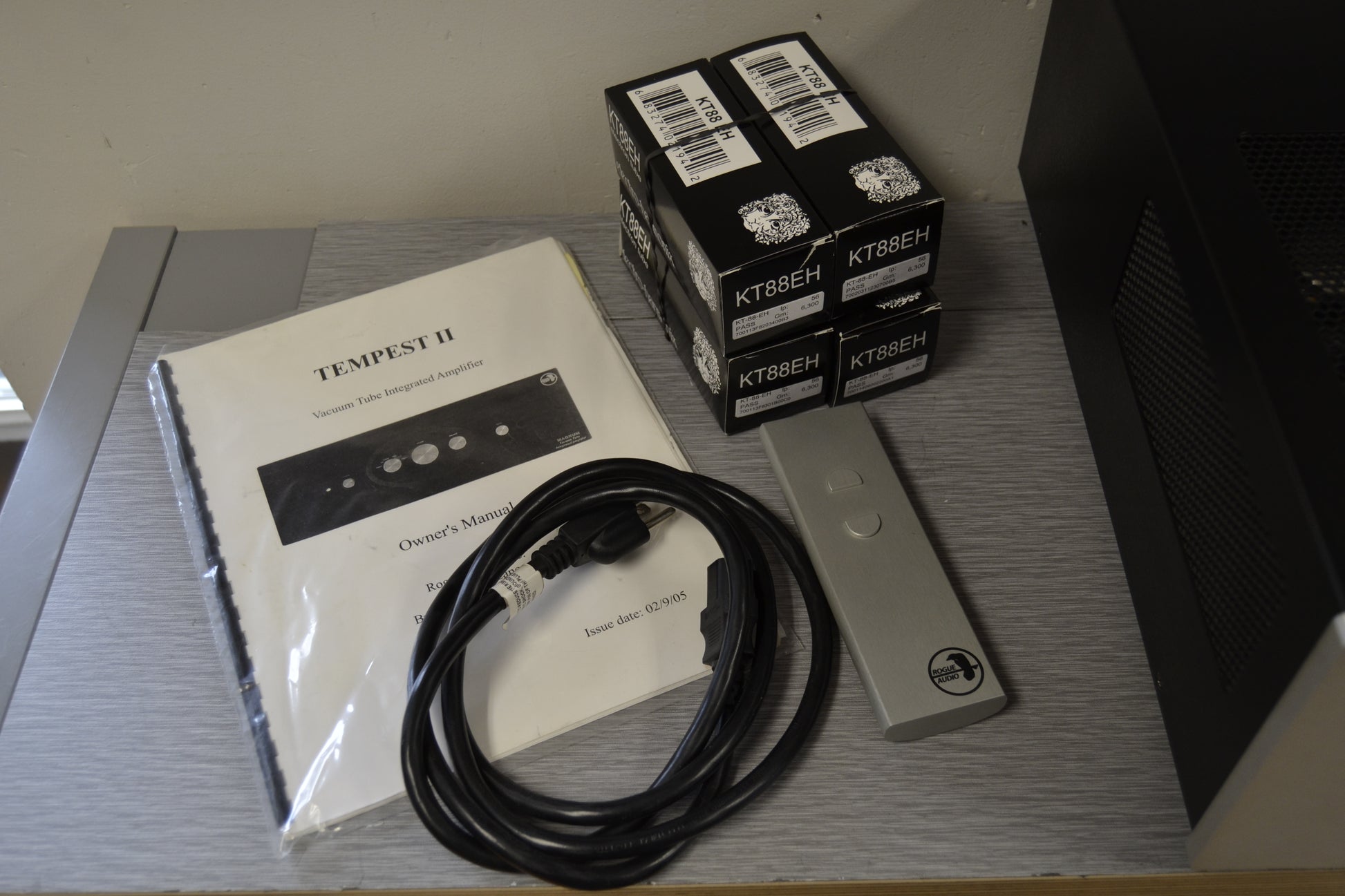 The $2695 USD Tempest II is 18" wide, nearly 16" deep, and 7" high, and it weighs a hefty 60 pounds. The original Tempest had a tube complement of four 12AU7s, two 12AX7s and four KT88s, while the Tempest II uses two 6SN7s, two 12AX7s, and continues to rely on four KT88s for power. The new design is an attempt not only to perfect the sound of the amplifier section, but also to increase the life span of the tubes. The original Tempest was rated at 60Wpc, and the Tempest II at 90Wpc -- a significant increase in power.