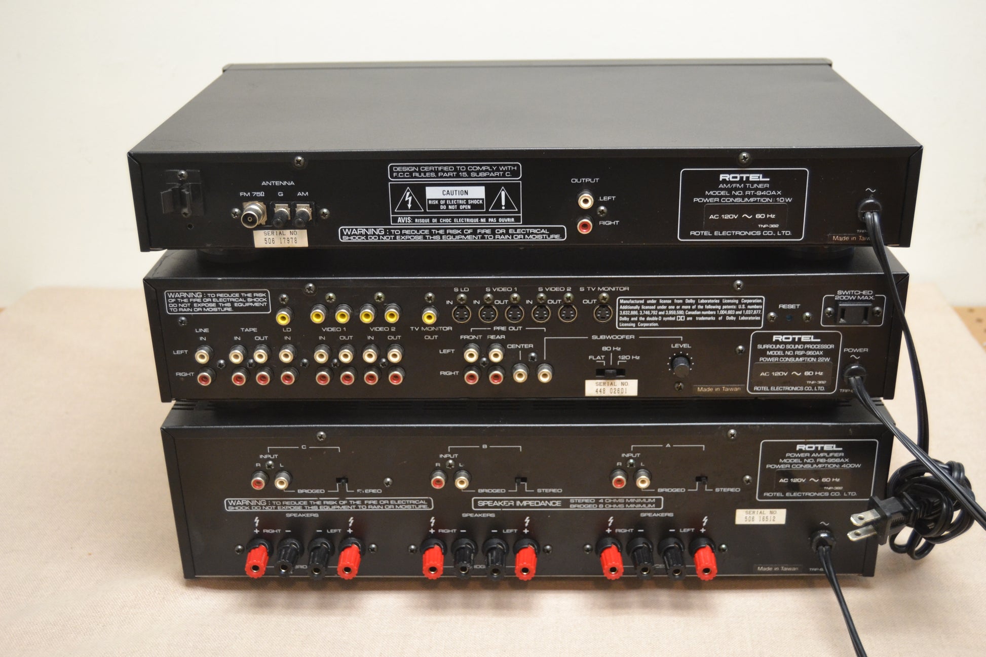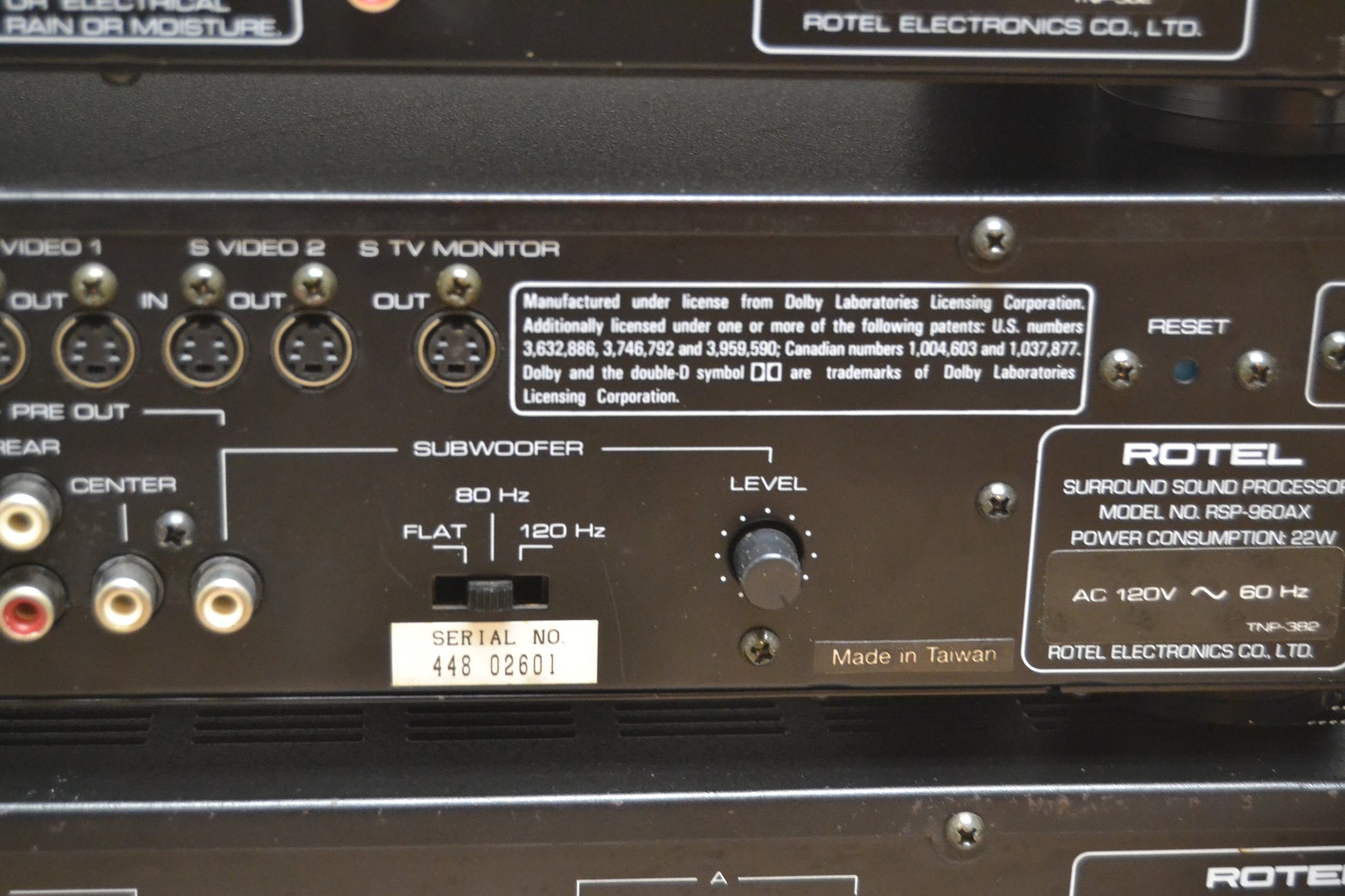 The RSP-960AX surround sound processor combines the ability of listening to Dolby Surround Pro Logic recordings with full or partial effects (depending on the speaker systems used), with the opportunity of also listening to other programs in any one of three simulated surround modes: Jazz Club, Concert Hall and Stadium.