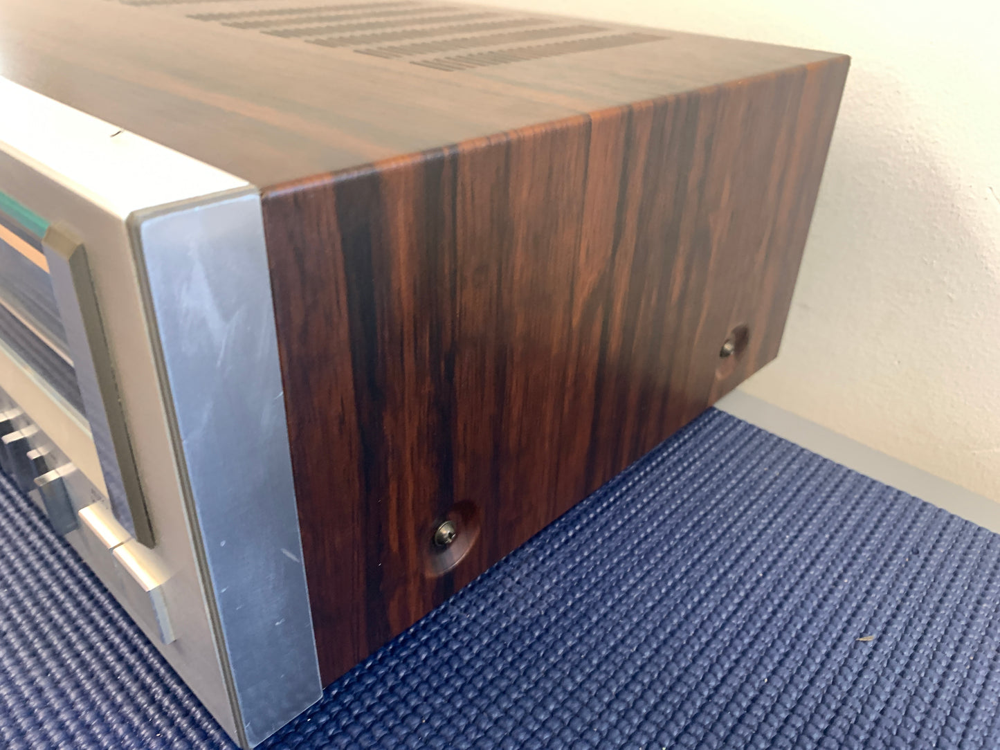 Refinishing the walnut cabinet can transform a unit. We do use real wood oil or Danish oil, not polyurethane. We clean the glass dial carefully; those silkscreened letters are fragile.