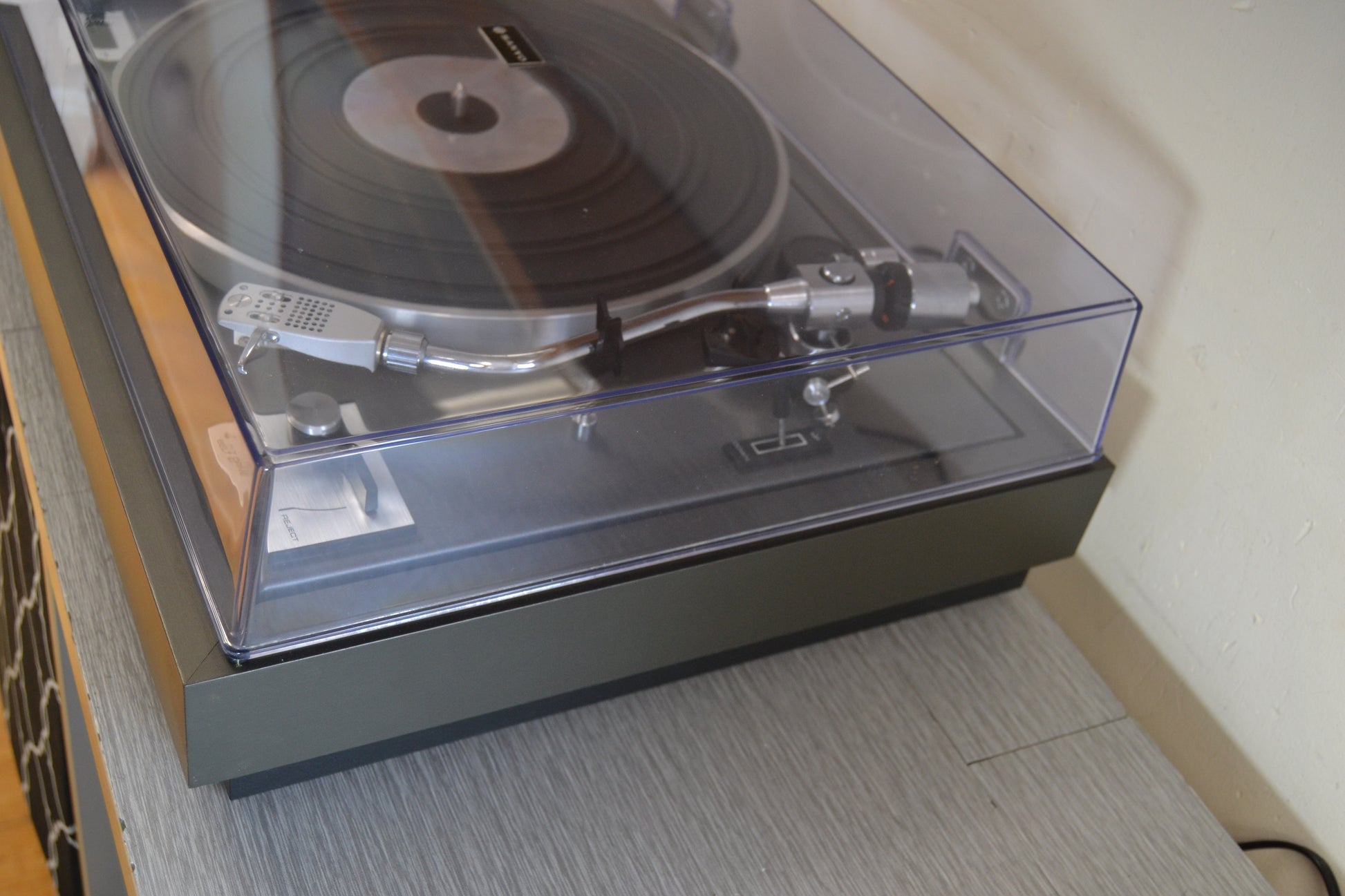 Refinishing the walnut cabinet can transform a unit. We do use real wood oil or Danish oil, not polyurethane. We clean the glass dial carefully; those silkscreened letters are fragile.