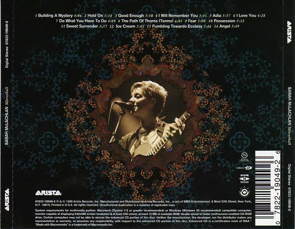 Live performance of Sarah McLachlan also released on DVD. Enhanced material is pictures and merchandise information.