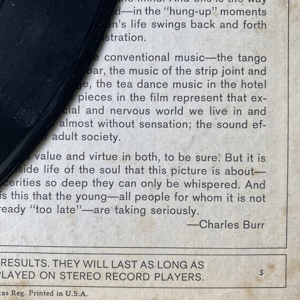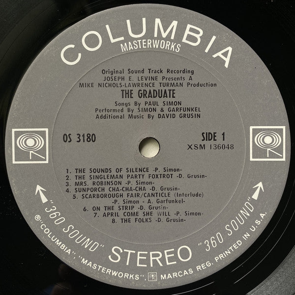 Title on cover and vinyl label: "The Graduate" Title on spine: "The Graduate (Original Sound Track Recording)" "Printed in U.S.A." "S" on the bottom right of the back cover.