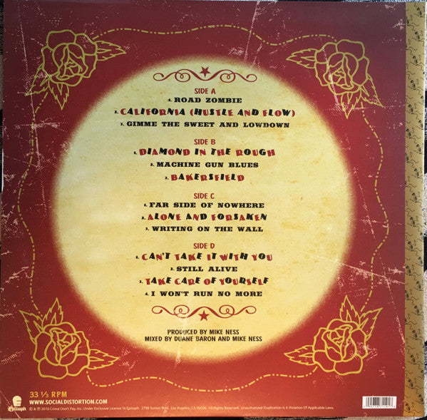 Red vinyl limited to 2500 copies. Issued in a gatefold sleeve. This vinyl version contains 2 bonus tracks, a 2-sided poster and the entire album on CD. Recorded at Ocean Studios in Burbank, CA. Mixed at the Mix Room in Burbank, CA. Mastered at Precision Mastering in Los Angeles, CA. © & ℗ 2010 Crime Don't Pay, Inc. Under Exclusive License to Epitaph Records.