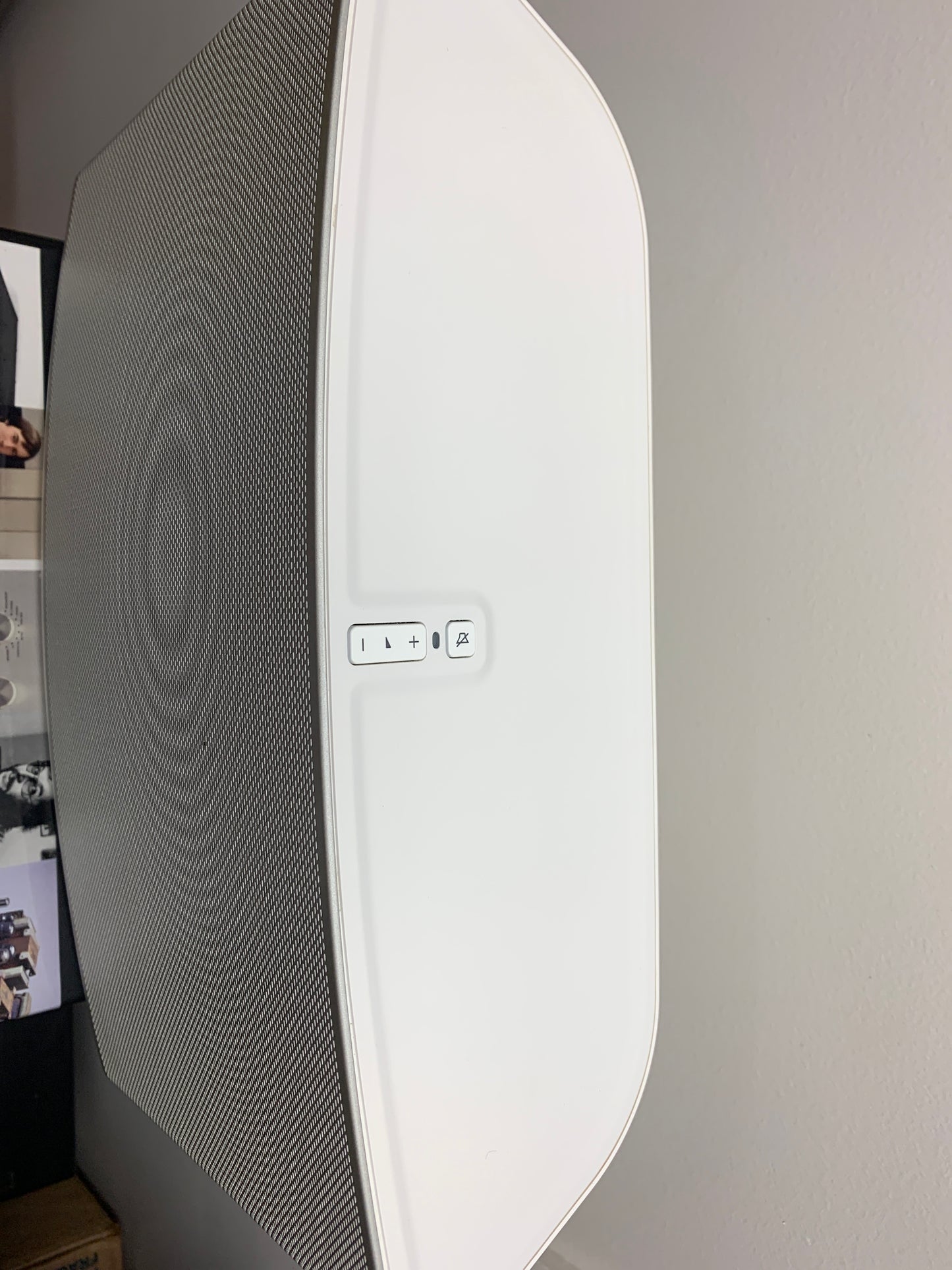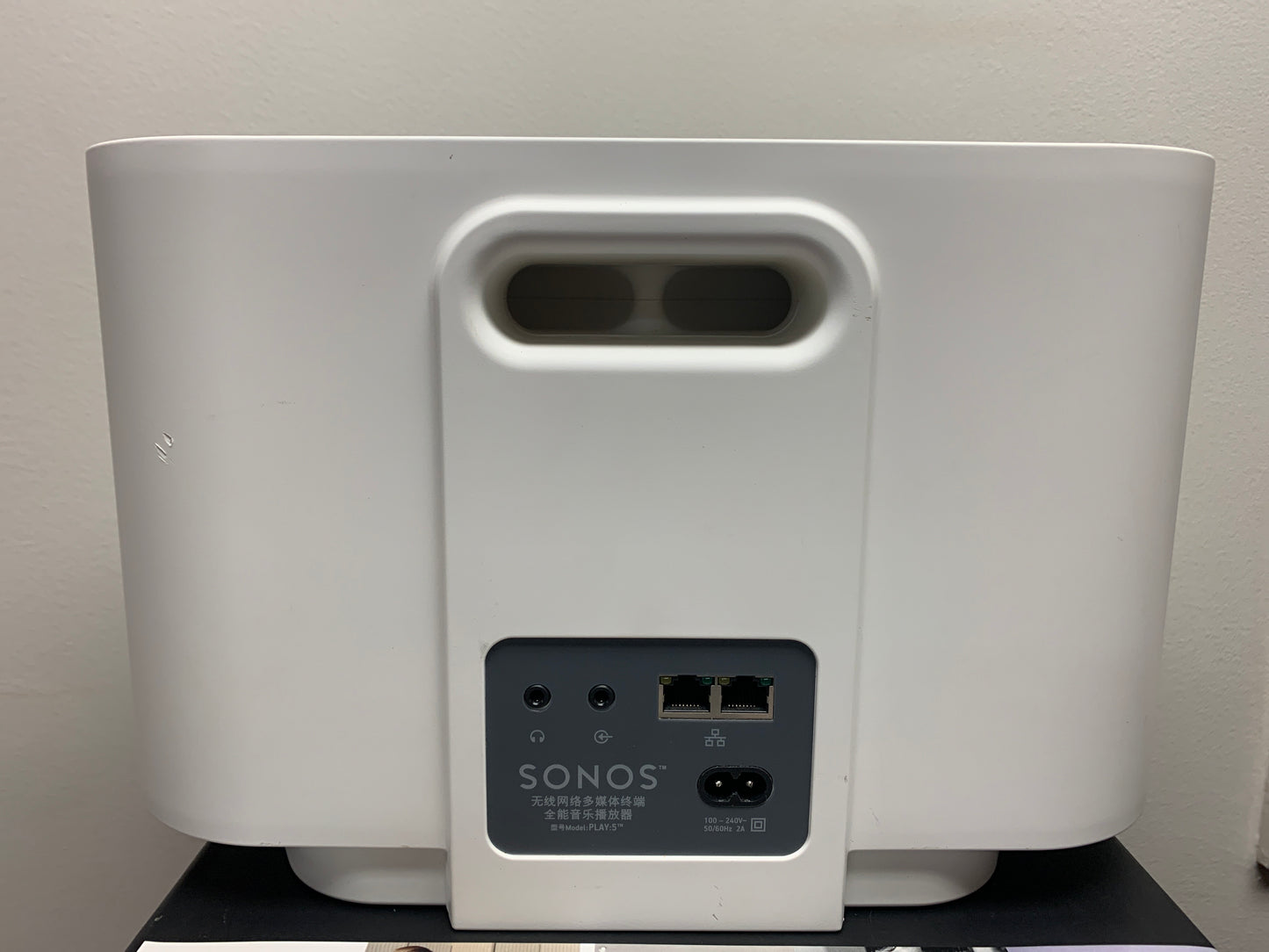 The Sonos Play:5 Gen 1 White is a wireless speaker that delivers high-fidelity digital music. It can connect to an internet source via Ethernet cable or built-in Wi-Fi. The Play:5 Gen 1 was manufactured between November 2009 and 2015. It has three mid-woofers and three tweeters in a sealed cabinet with a phased speaker array. It also has six class D amplifiers. The Play:5 Gen 1 is available in either white or black.
