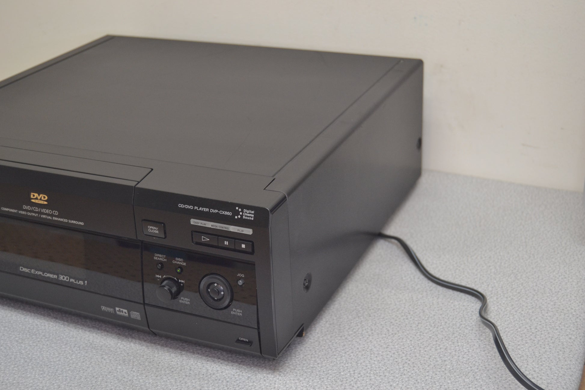 Despite its 301-disc capacity, the DVP-CX860 is relatively compact as mega changers go. The Disc Explorer™ feature can display a list of every loaded CD and DVD on your TV screen (requires direct video input on TV). Add in the top-notch DVD picture and super-clean search modes that Sony is famous for, and you've got one awesome player!