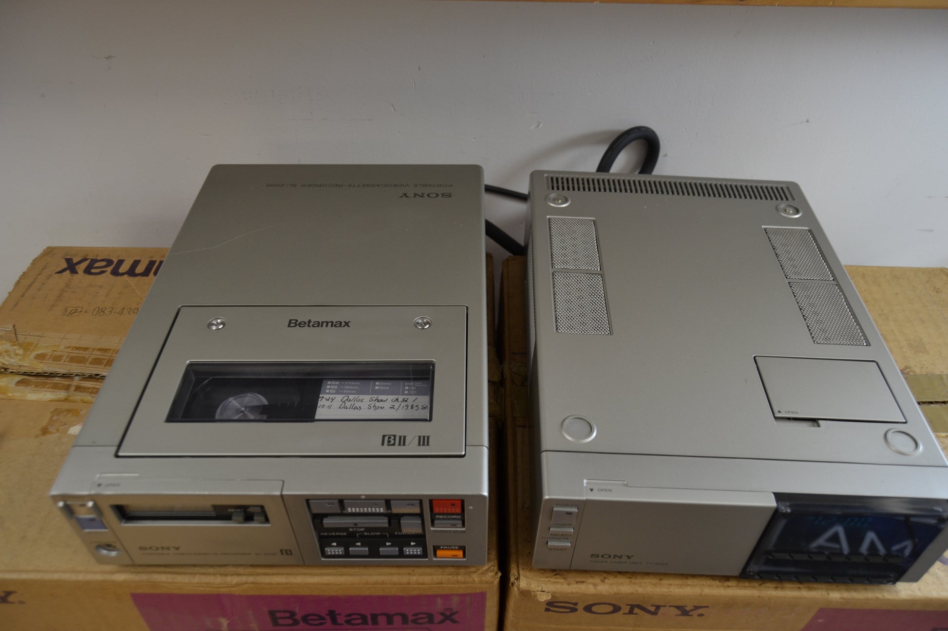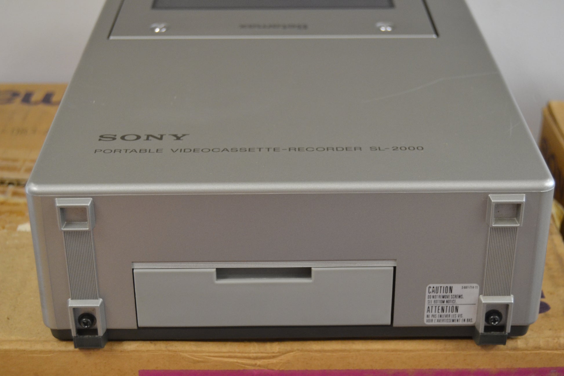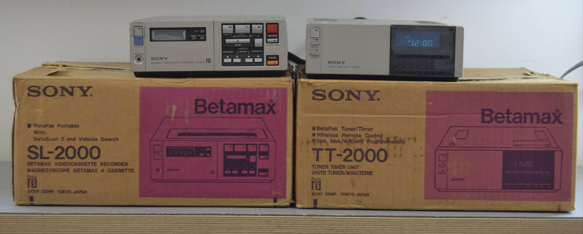 When Sony introduced the SL-2000 it was immediately recognized by every video publication and technical lab as the finest portable VCR ever made. Everybody who wanted to record video "on the go" had to have one. It was (and still is) a crowning achievement with stellar handling characteristics that surpasses any consumer video tape recorder. Gorgeous and simple it was also totally supported by its maker, Sony. They poured everything that they were famous for into this little jewel. It afforded a new creativity and flexibility previously not available to the consumer, and there was an accessory to accommodate your every creative desire. Portability was its hallmark, but one of the the primary accessories was its equally small and equally impressive tuner/timer. It turned the portable into a full featured, free standing home video recorder. It also charged the removable battery inside the VCR and permitted arm chair control by using the included full function infrared remote, called the Commander. But it didn't stop there (that would have been enough for some VCR manufacturers) no, Sony offered lots of other accessories. For powering the portable VCR there was a 12 volt car adapter, a separate battery charger, a rechargeable battery 4-pack and a rechargeable battery belt. There were also a number of sophisticated cameras that you could use for mobile movie making. To accommodate this new mobility there were several carrying cases, a clamshell sports pack that strapped onto your back, that also supported a camera, and a four wheeled folding cart. There was even an outrageously expensive diving enclosure for underwater videography that held a camera, recorder and two batteries. This plethora of support accessories were advertised by Sony as the "Betamax System" strategy. Sony was very big on coming up with buzzwords that called attention to a feature or benefit the customer would receive from their products. It had work wonders for them with their other products, it should also work with their new Betamax. Another Sony slogan at this same time was the "Betamax, the Sony of VCRs". This put forth the corporate ego that Sony was the best you could get. This bragging was intended to promote Betas quality image but it also had the negative effect of putting the other Beta format makers (Sanyo, NEC,Toshiba, Aiwa and Zenith) in a secondary light in the eyes of consumers. The untouchable excellence of the model SL-2000 didn't help the situation because it has so many great things going for it, one was worthy of a whole new Sony buzzword. A new term that Sony hoped would highlight a smart new feature incorporated into this portable VCR. This newcomer to the list of novel names was "Videola" and when it hit the public it immediately got Sony in trouble. But first what this new feature was and how it was made possible. It was attainable because the reel table assembly inside the SL-2000 was capable of maintaining constant tension at all times, at any speed, at any angle during operation. This allows it to slow scan the tape backwards and forwards in pause while showing a very good, steady picture. This is great for locating editing points when going through different scenes. Even better Sony incorporated this feature into the recording mode when you using a Sony camera. Called "Record Review" it worked this way. When the VCR was in the recording pause mode pressing a button on the camera would cause the tape to travel backwards a short distance and then play back the last few seconds of what you just recorded. After it did this it would then go back into record pause mode. This awesome function was possible because of what Sony called the Videola feature that was built into the SL-2000. (The magnificent SL-2500 home recorder accepts a camera and duplicates this feature.) Sony heavily promoted the SL-2000 and all was going great until a company named Movieola cried foul. Sounds too much like us, they said. Sony was already in one lawsuit over movie rights so they didn't need this. They agreed to change the name of this new super power to "SWING SEARCH" which was pretty clever, really (and sort of accidental). It was a good replacement because you can place your fingers on both of the Swing Search keys on the front of the VCR and press them back and forth during pause, it really was like you were swinging the tape direction back and forth. In the picture above you can see these "VIDEOLA" buttons on the face of the VCRs. Sony only sold a few of the units that had VIDEOLA printed on the front before it was replaced with "SWING SEARCH". Of those early units the very first ones also didn't have the tactile bumps molded into the play, record and videola buttons. The two early designs are shown picture above (Plate 1). Click on the picture and you can see the remotes that came with the companion TT-2000 unit (PLATE 2). The early one has "VIDEOLA" printed beneath the special effects button array, later it changed to "SWING SEARCH". After the name changes and the dust settled the Sony Beta partner, Zenith, decided they wanted this portable to compliment their current home models. Sony had been making their Beta VCRs all along and branding them as Zenith. Of course, they would oblige. It became their model VR9800. Click on the picture (Plate3) and it is shown under the final design SL-2000, which now had Swing Search printed above the control buttons. Below that is the VR9800 and you can see that Zenith called this feature "Video Action". They carried their buzzword over to their other models as well. It's easy to see the similarity in this picture. The VR 9500 was the SL-2000 with just a slightly different button configuration. (Notice there are no tactile bumps on the buttons.) During this time period Zenith was in a good position to reap some great benefits from its Beta association, but things went south pretty quick. Turned out that all the accessories for this awesome new portable had Sony's name on item! N