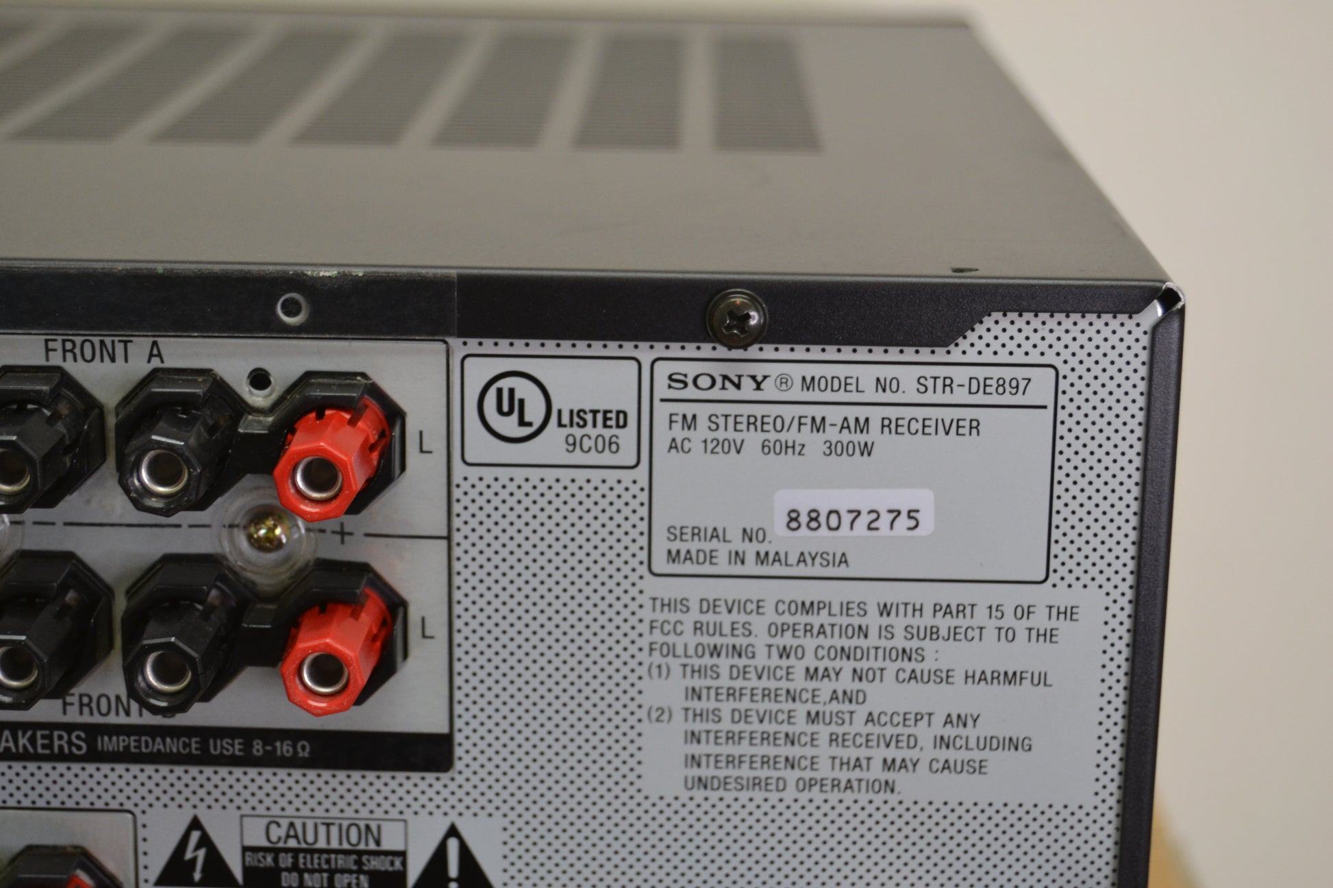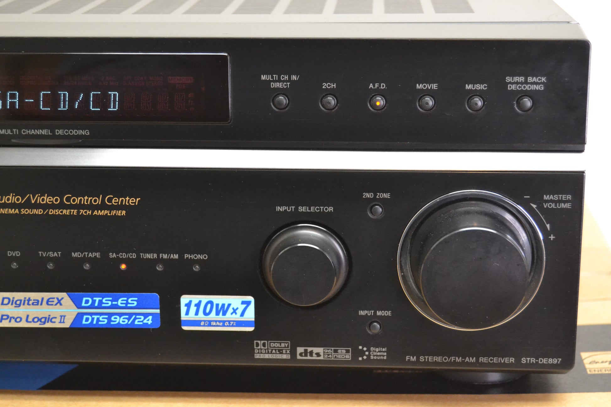 The STR-DE897 is your ticket to wraparound home theater sound! If you've been impressed by 5.1-channel home theater systems, wait 'til you hear what 7.1 surround adds to the experience — it creates even more expansive, realistic soundfields that totally immerse you in the movie experience. The 'DE897 packs 100 full-bandwidth-rated watts x 7 channels of clean Sony power, guaranteeing room-rocking multichannel sound for all your music and movies. And if you've got a 7.1 speaker system, you can set this receiver to transform 5.1 and 6.1 Dolby® Digital and DTS® soundtracks into 7.1 surround sound automatically!
