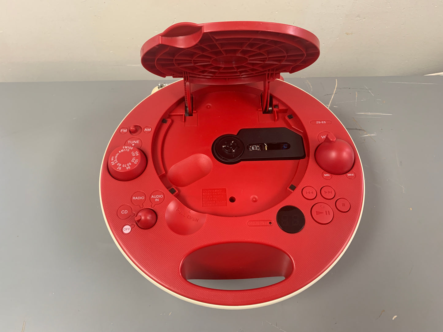 The Sony ZS-E5 is a portable boombox that has a built-in analog AM/FM tuner, an integrated CD player that supports CD-R/RW playback, and a line-in jack for digital music players. It has a compact body for maximum portability and is ideal for anyone who likes listening to music on-the-go. It comes in four colors: red, blue, pink, and aqua.