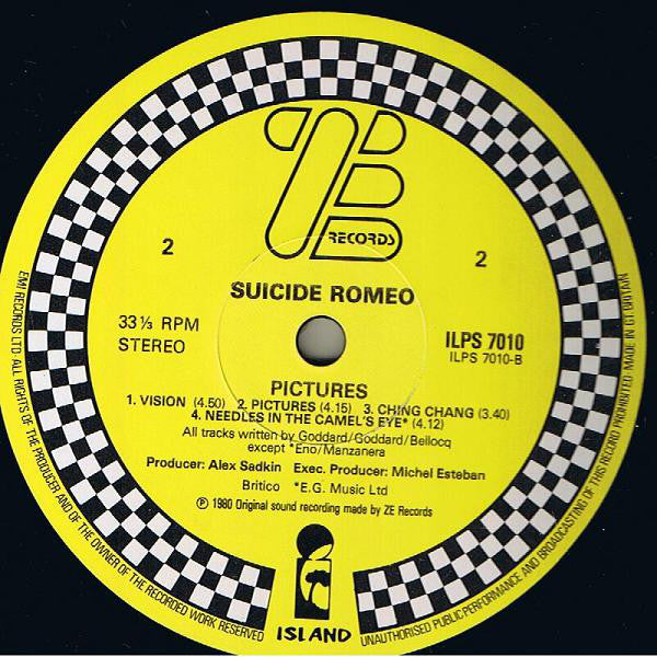 Printed lyrics inner sleeve. Recorded at Compass Point Studios, Nassau, Bahamas All songs published by Britico except "Needles in the Camel's eye" by E.G. Music [spine ℗ 1980 Original Sound Recording by ZE Records [labels ℗ 1980 Original sound recording made by ZE Records Made in Gt Britain
