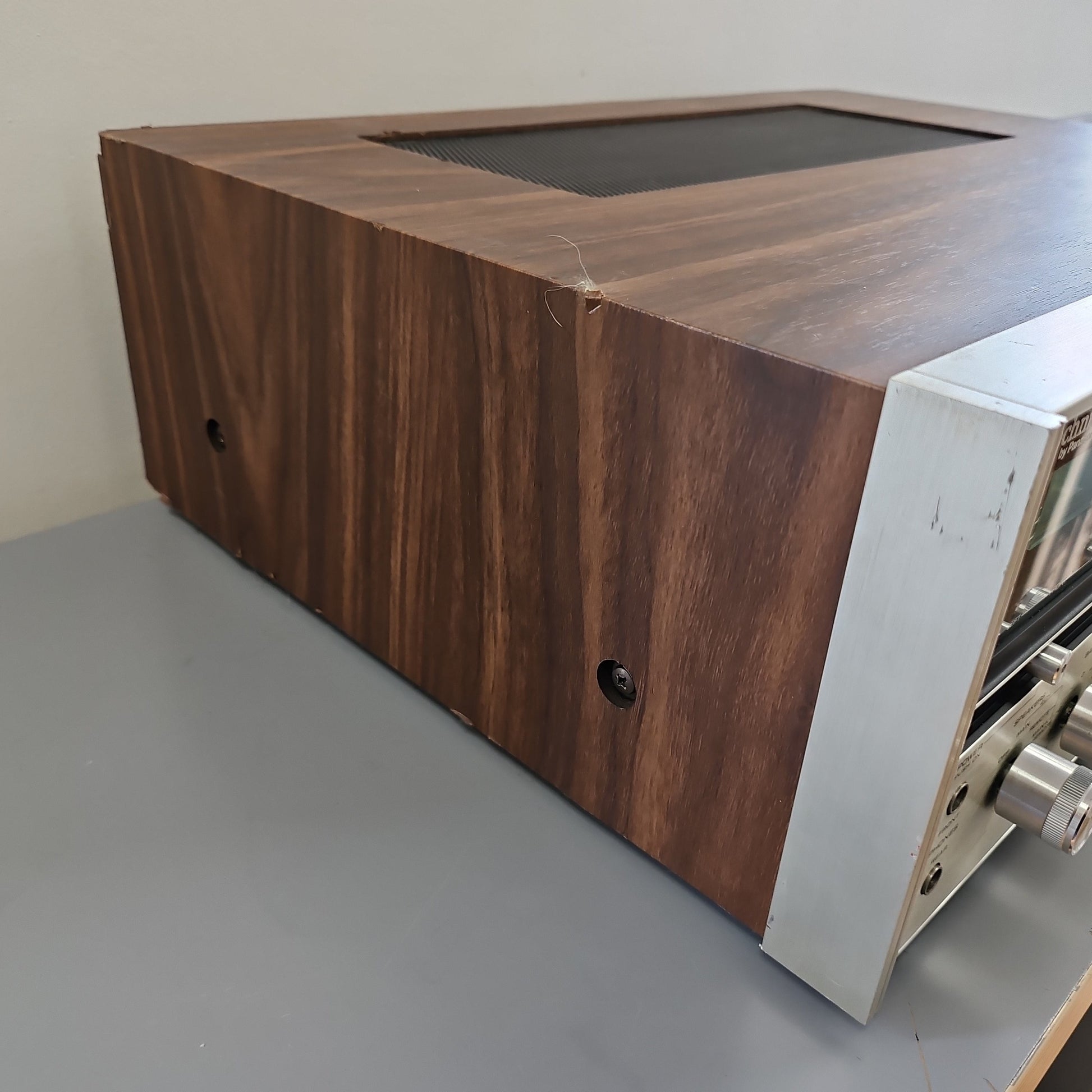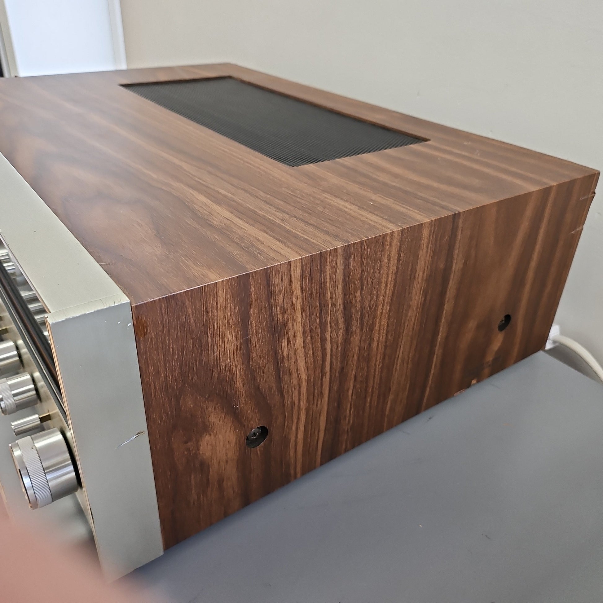 Refinishing the walnut cabinet can transform a unit. We do use real wood oil or Danish oil, not polyurethane. We clean the glass dial carefully; those silkscreened letters are fragile.