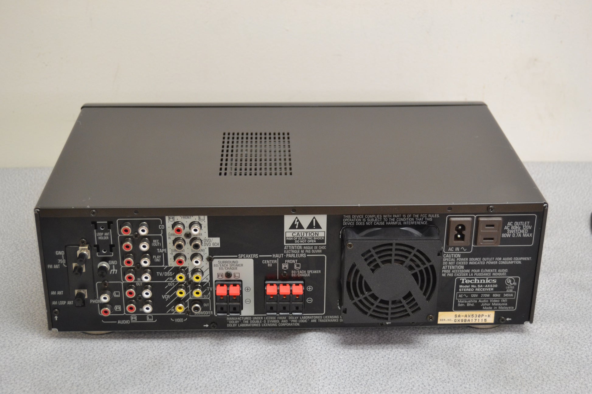 Surround output: 80W (front), 80W (center), 80W (rear)
