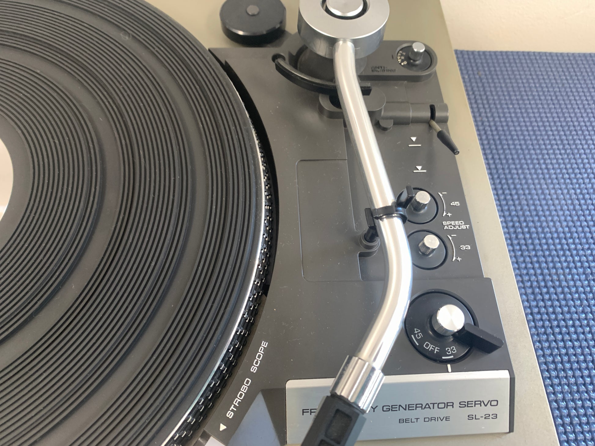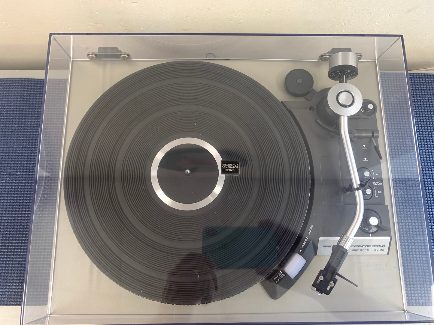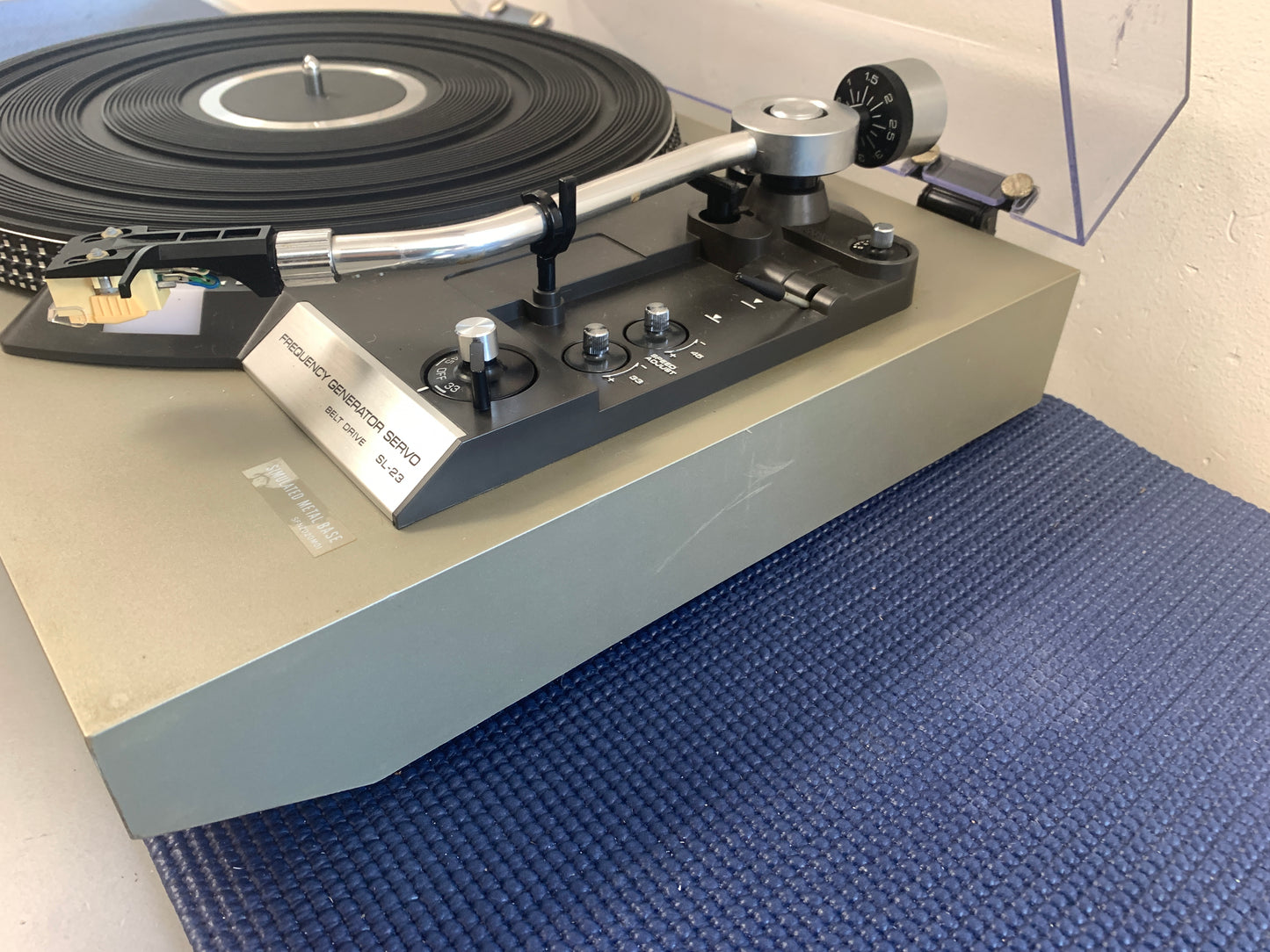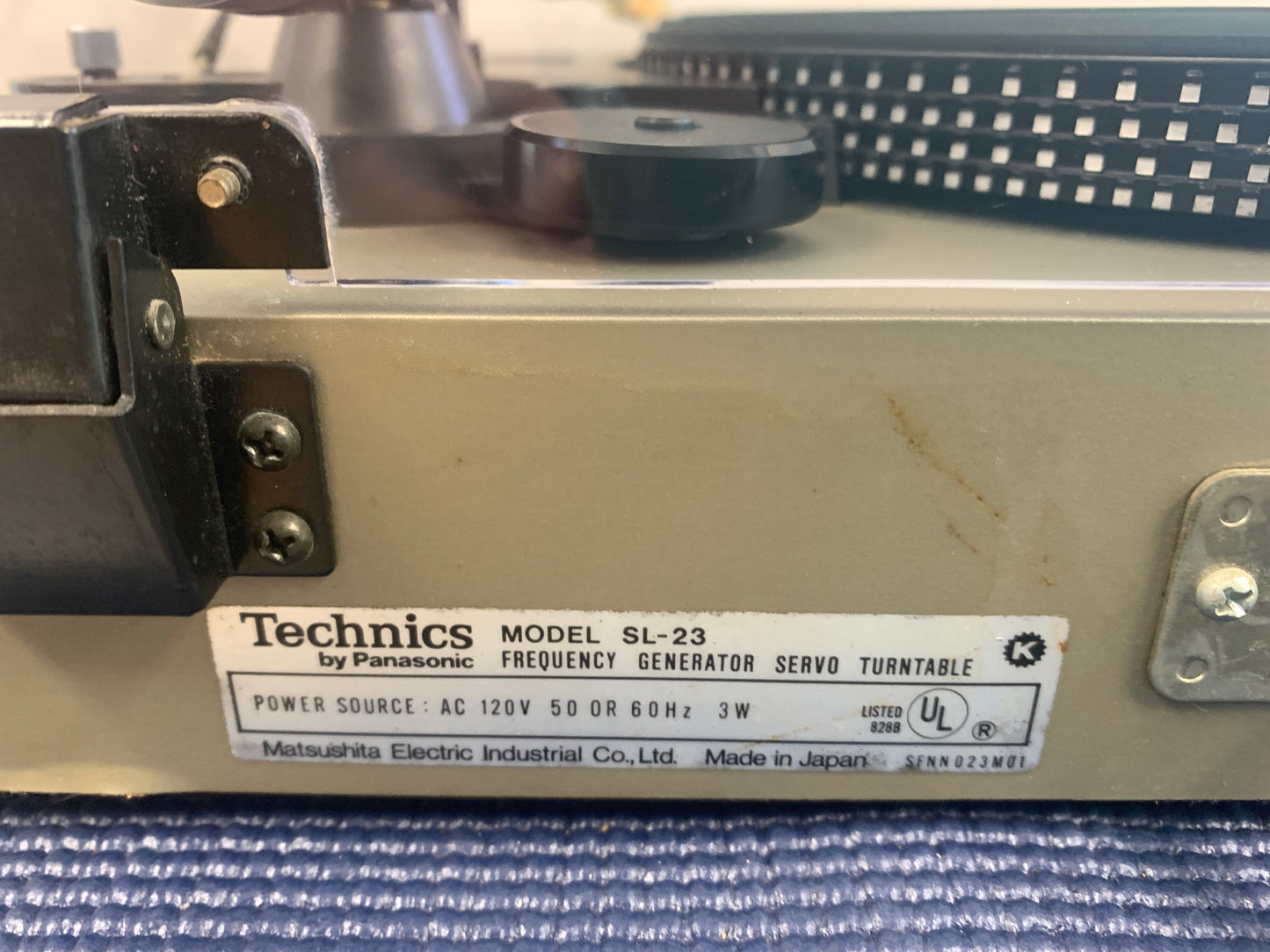 The Technics SL-23 is a high-quality, belt-driven turntable with a newly developed FG (frequency generator) servo-controlled DC motor with IC.