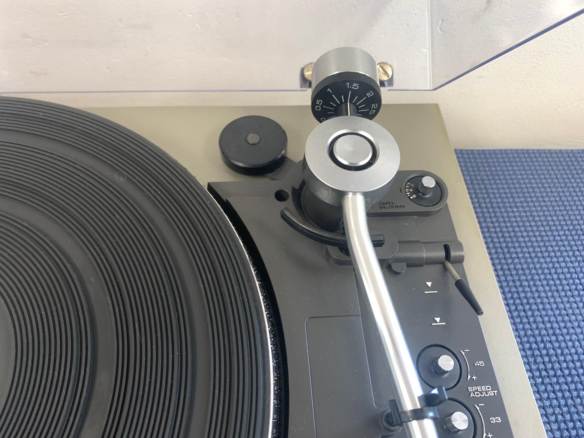 The static-balanced, S-shaped tonearm has the benefit of automatic return/shut-off, and has a MM cartridge combined with the head-shell for high compliance support and good channel separation.