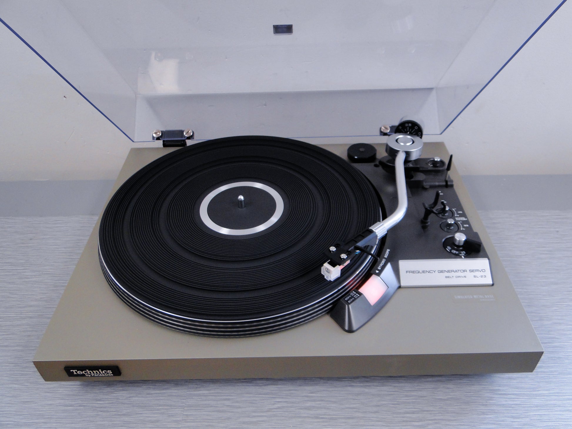 The Technics SL-23 is a high-quality, belt-driven turntable with a newly developed FG (frequency generator) servo-controlled DC motor with IC.