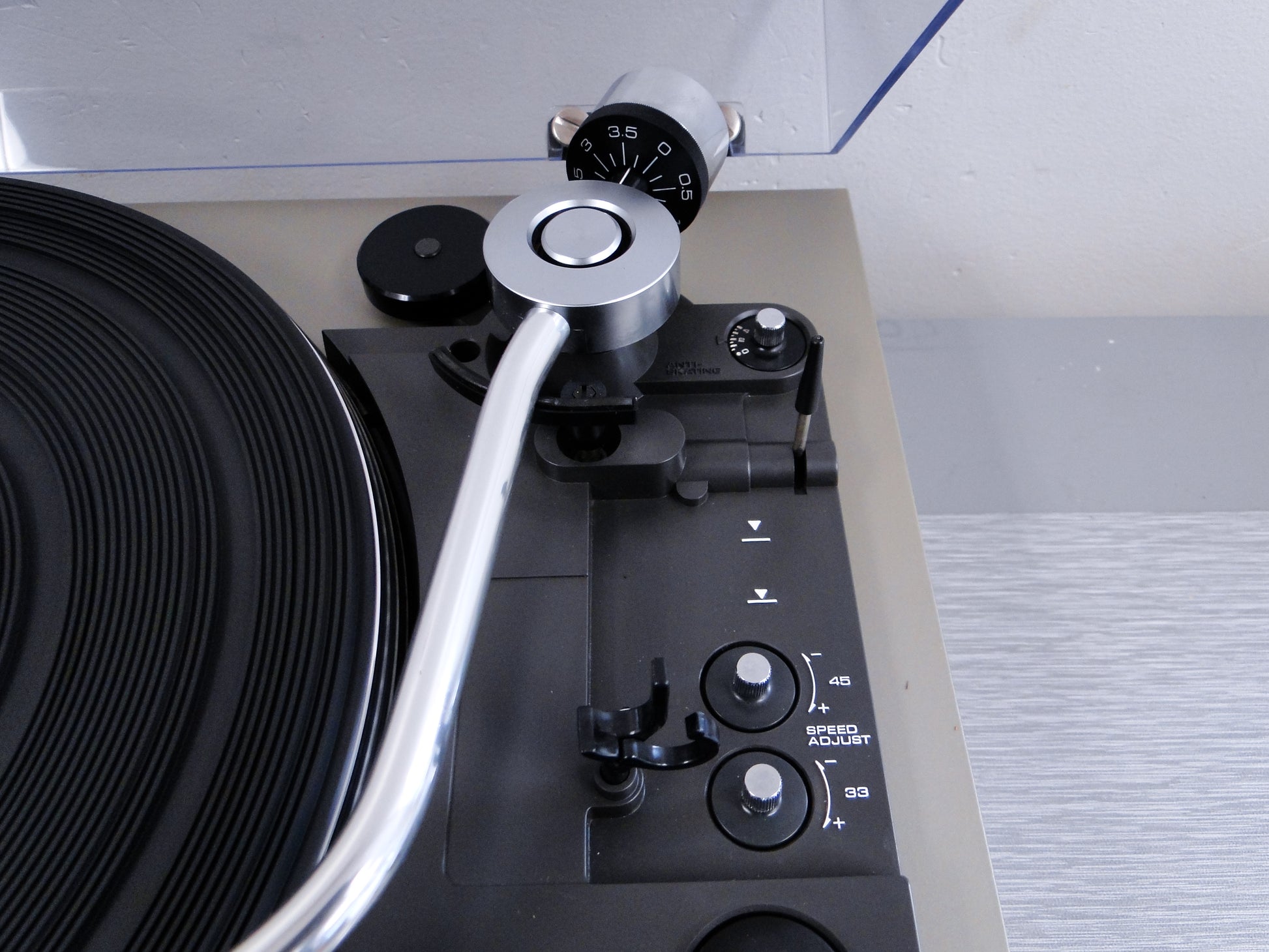The static-balanced, S-shaped tonearm has the benefit of automatic return/shut-off, and has a MM cartridge combined with the headshell for high compliance support and good channel separation.