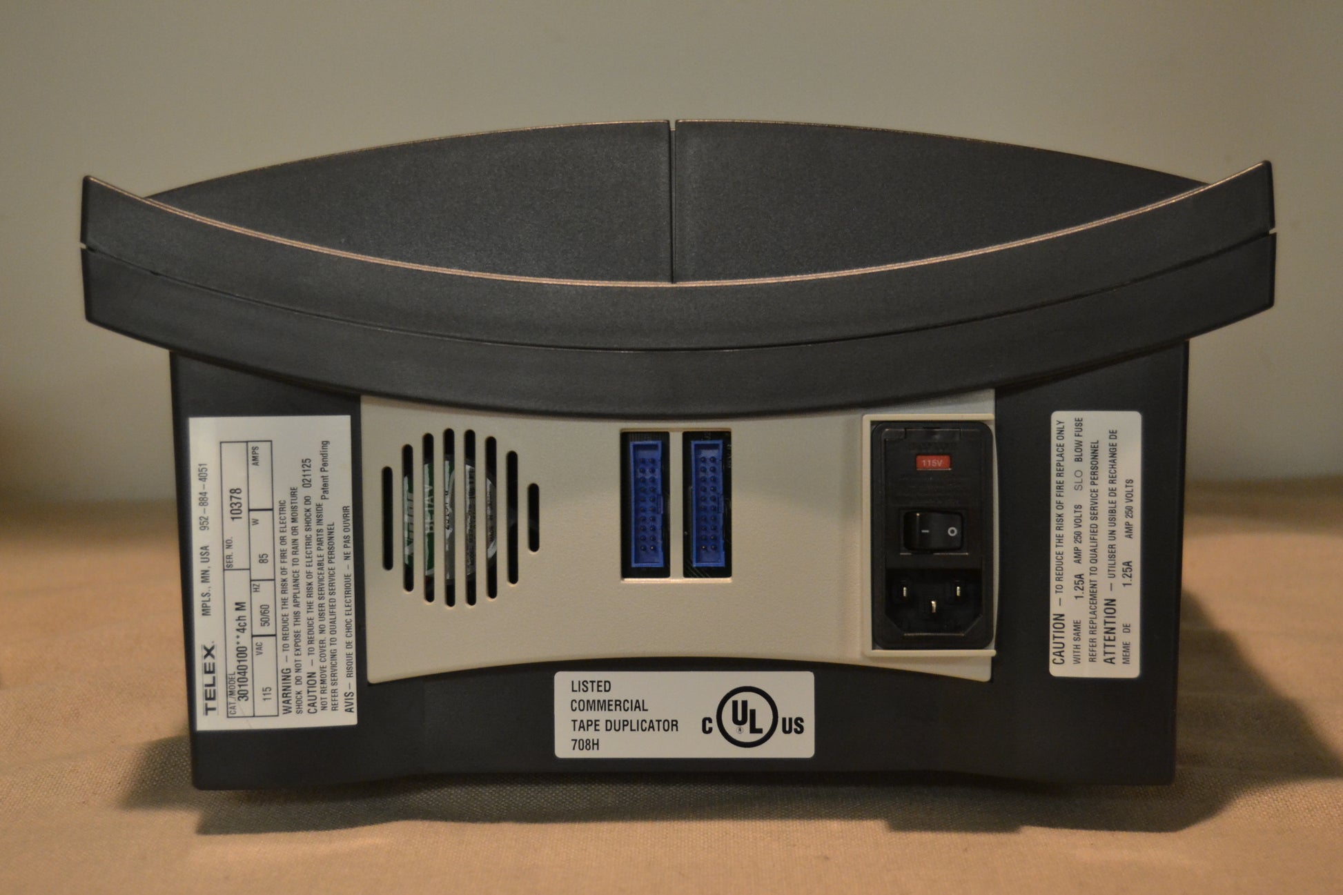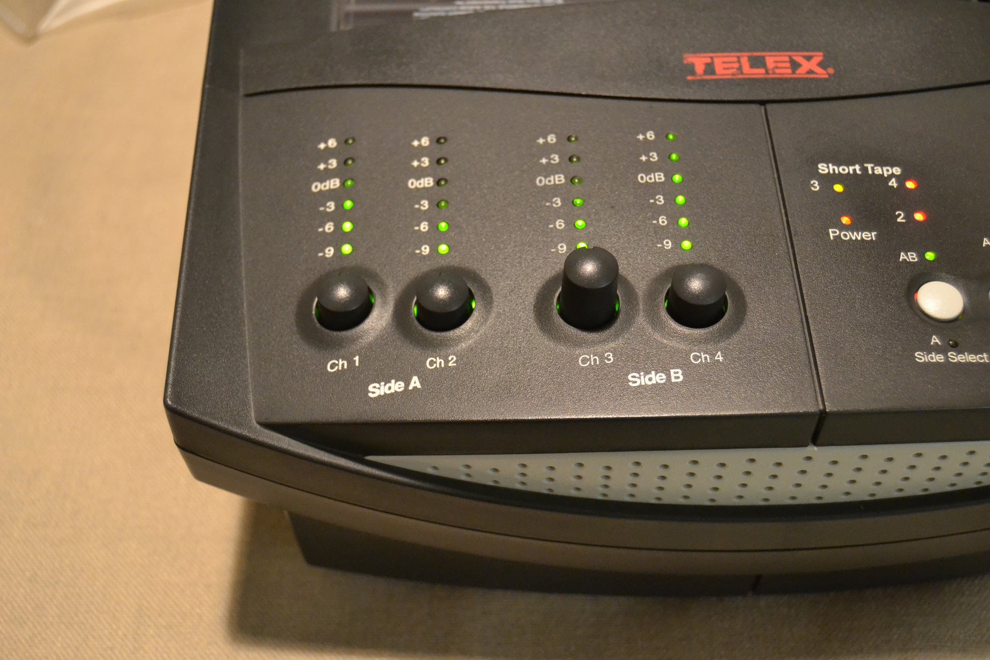 The Telex XGen was a high-speed cassette tape duplicator designed for rapid distribution of recordings, especially for public speaking events, known for its superior sound quality and 15 ips (inches per second) copy speed. Key specifications include a frequency response of 40 Hz - 12.5 kHz, a signal-to-noise ratio of 52 dB (A-weighted), and two tape tracks with either Type I or Type II equalization options. The unit also features a 600 kHz bias oscillator, weighs approximately 19.5 pounds, and operates on various AC power requirements.