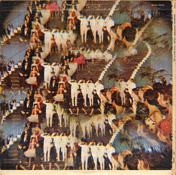 This version has the following features: - ASCAP credit after every song on label A. - BMI credit after every song on label B. - "All selections are published by Maclen Music, Inc., BMI" on left inside gatefold under tracklist B. - No "A Subsidiary of Capitol Records..." in the label rimtext. - The "STEREO" on both labels is small and alligned differently. - Large "1" and "2" on labels. Gatefold sleeve with 24 page book bound to center of gatefold. Black labels with rainbow-rim. Note on runouts: "SMAL" was originally "ST" but modified to read "SMAL".