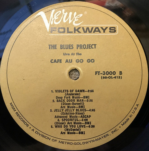 This version has Verve Folkways labels and jacket with the FT catalog numbers printed on both ®© Metro-Goldwyn-Mayer, Inc./Printed in U.S.A. MGM Records • A Division Of Metro-Goldwyn-Mayer, Inc. • Made in U.S.A. A1, A2, B2, B4, B5: Arc Music—BMI A3: Feather Music—BMI A4: Isalee Music—BMI A5: P.D. A6: Project 7 Music—BMI B1: Deep Fork Music—BMI B3: Advanced Music—ASCAP