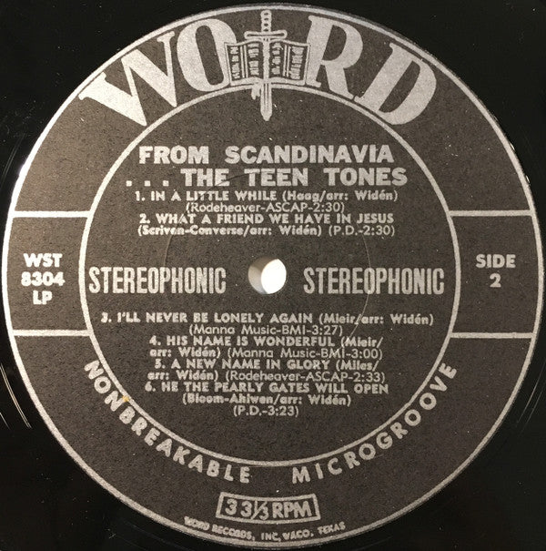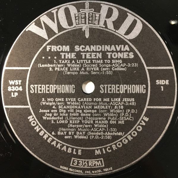 Black and gray labels Publishers: A1: Sacred Songs-ASCAP A2: Tempo Mus. Serv. A3: Alamo Mus.-ASCAP A4a, A4b, A6, B2, B6: P.D. [=Public Domain A4c: Nazarene Publ. SESAC A5: Herman Music-ASCAP B1, B5: Rodeheaver-ASCAP B3, B4: Manna Music-BMI