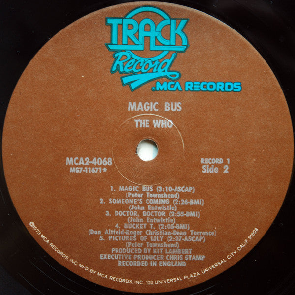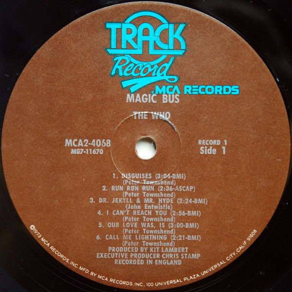 MCA Pressing Plant, Gloversville pressing denoted by "⁎" printed on Side B labels, and stick numeral "1" etched in all runouts.