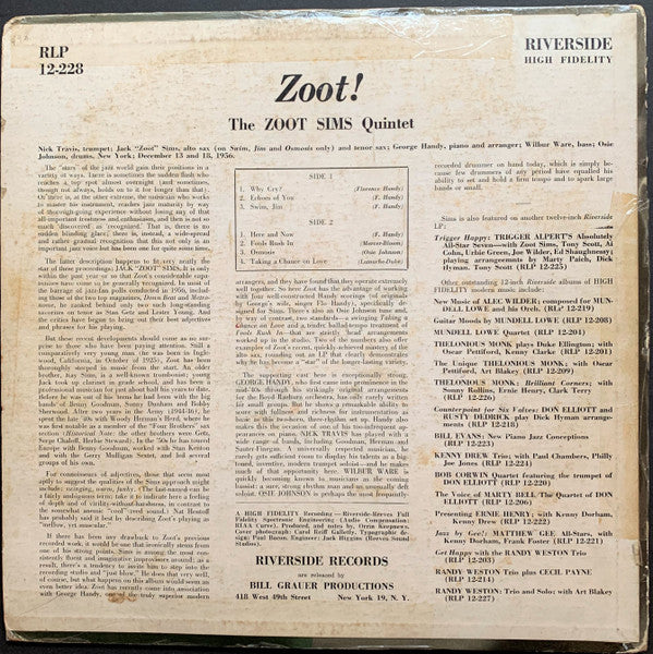 1st press deep groove white/blue/black labels. New York: December 13 and 18, 1956. Released by Bill Grauer Productions New York City