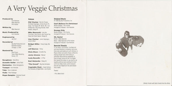 ℗ & © 1996 Big Idea Productions, Inc. Manufactured and distributed by Word, Inc., 3319 West End Ave. Nashville, TN 37203 In Canada: Nelson/Word, Vancouver BC. In Great Britain: Nelson/Word, UK. WARNING: Unauthorized reproduction is prohibited by law. Printed in U.S.A. [on tray card and booklet ℗ & © 1996 Big Idea Productions, Inc. WARNING: Unauthorized reproduction is prohibited by law. [on CD disc Track No. 2 ©1970 J & H Publishing Co. Track Nos. 12, 14, 16 ©1996 Bob & Larry Publishing (ASCAP) Recorded at Big Idea Productions and Bucktown Studios, Chicago, IL 8/96 Mastered: Taylor Made Mastering, Denver, CO Original Music ©1996 Big Idea Productions, Inc. Contains 4-page-panel folder fold out booklet
