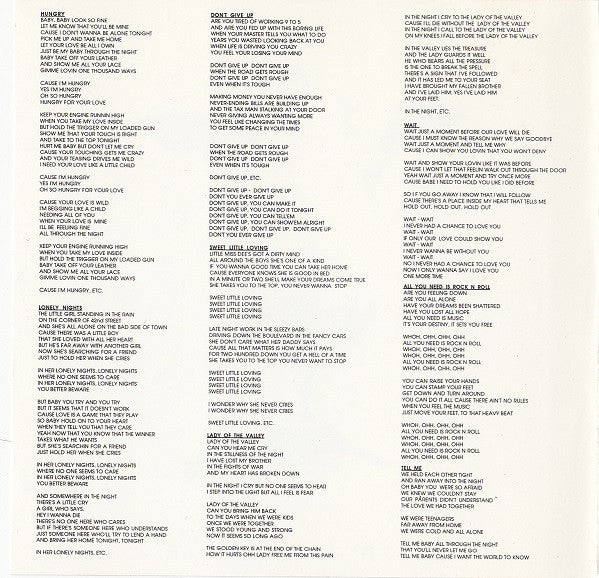 ℗ © 1987 Atlantic Recording Corporation All lyrics © 1987 Vavoom Music Inc., ASCAP On disc face: Made in Germany On traycard: Manufactured in Germany by Record Service GmbH, Alsdorf · Pressé en Allemagne par Record Service GmbH, Alsdorf [Warner logo a Warner Communications Company Digitally recorded at Amigo Studios, North Hollywood, California, March-April, 1987 Released in standard jewel case including a 4-page booklet with lyrics and credits. Very similar to [r=22083766 but with price code "France CA 835" as the only difference.