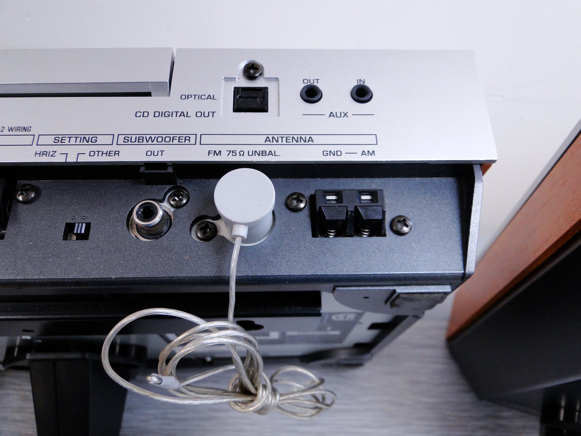 The built-in CD player handles store-bought CDs, as well as home-burned audio CD-R and CD-RW discs. An optical digital output lets you hook up a separate MD or CD-R recorder. The player's clear acrylic, motor-driven door lets you actually see your discs as they spin — a stylish touch. The built-in AM/FM tuner features 40 presets for quick access to all your favorite stations.