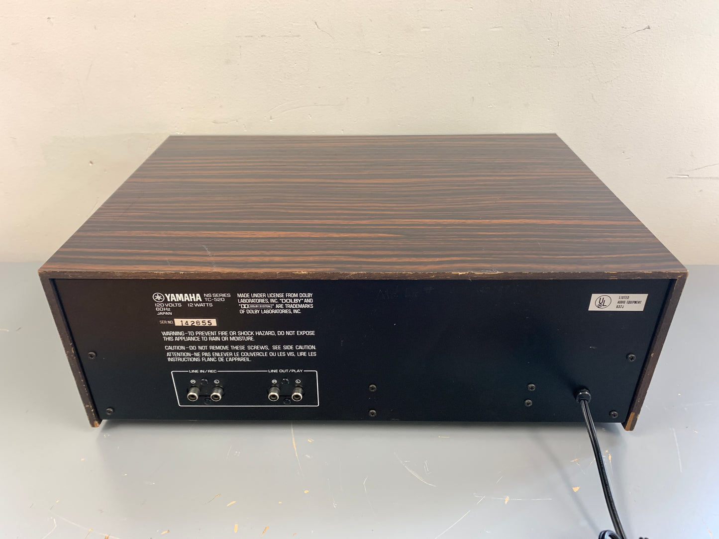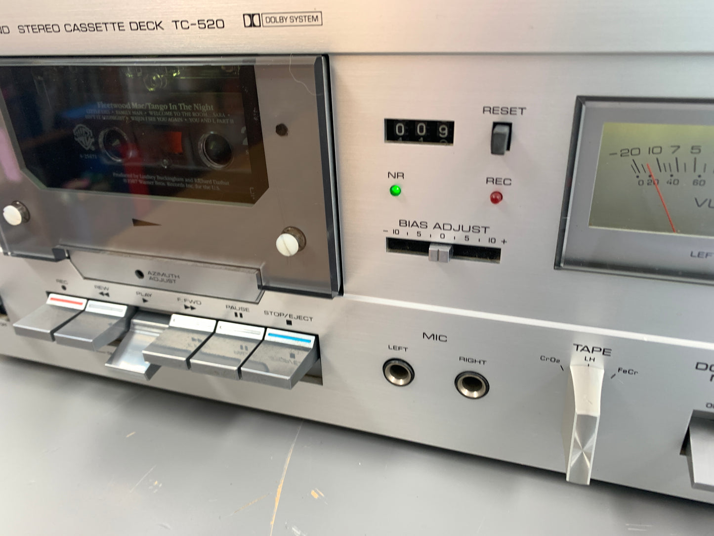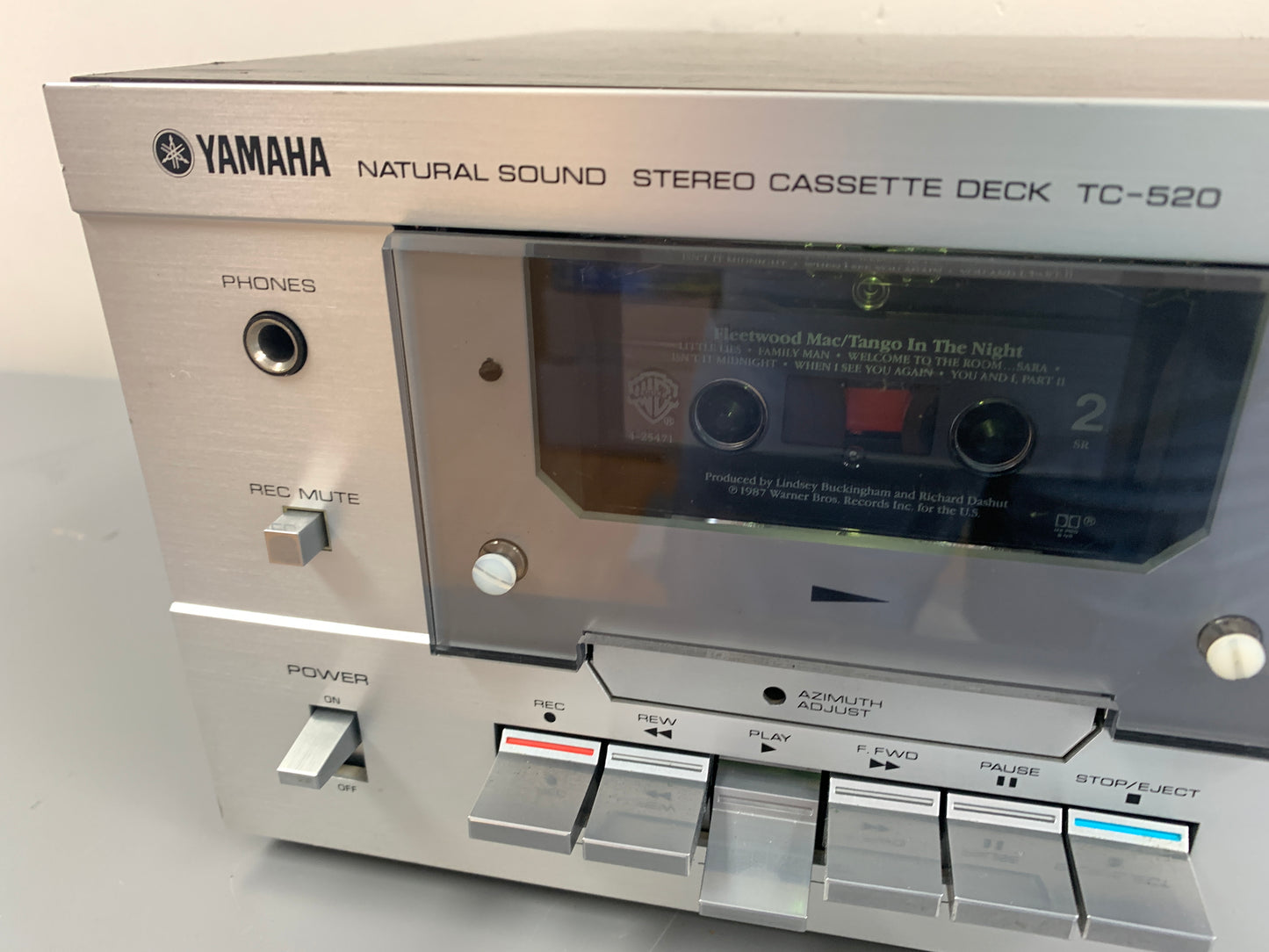 The Yamaha TC-520 is a front-loading, two-head stereo cassette deck with a double belt drive for stable rotation and a DC motor for low vibration and high torque. It also has a superhard permalloy head for clean sound with less wear, and offers low noise, chrome, and ferrichrome positions.