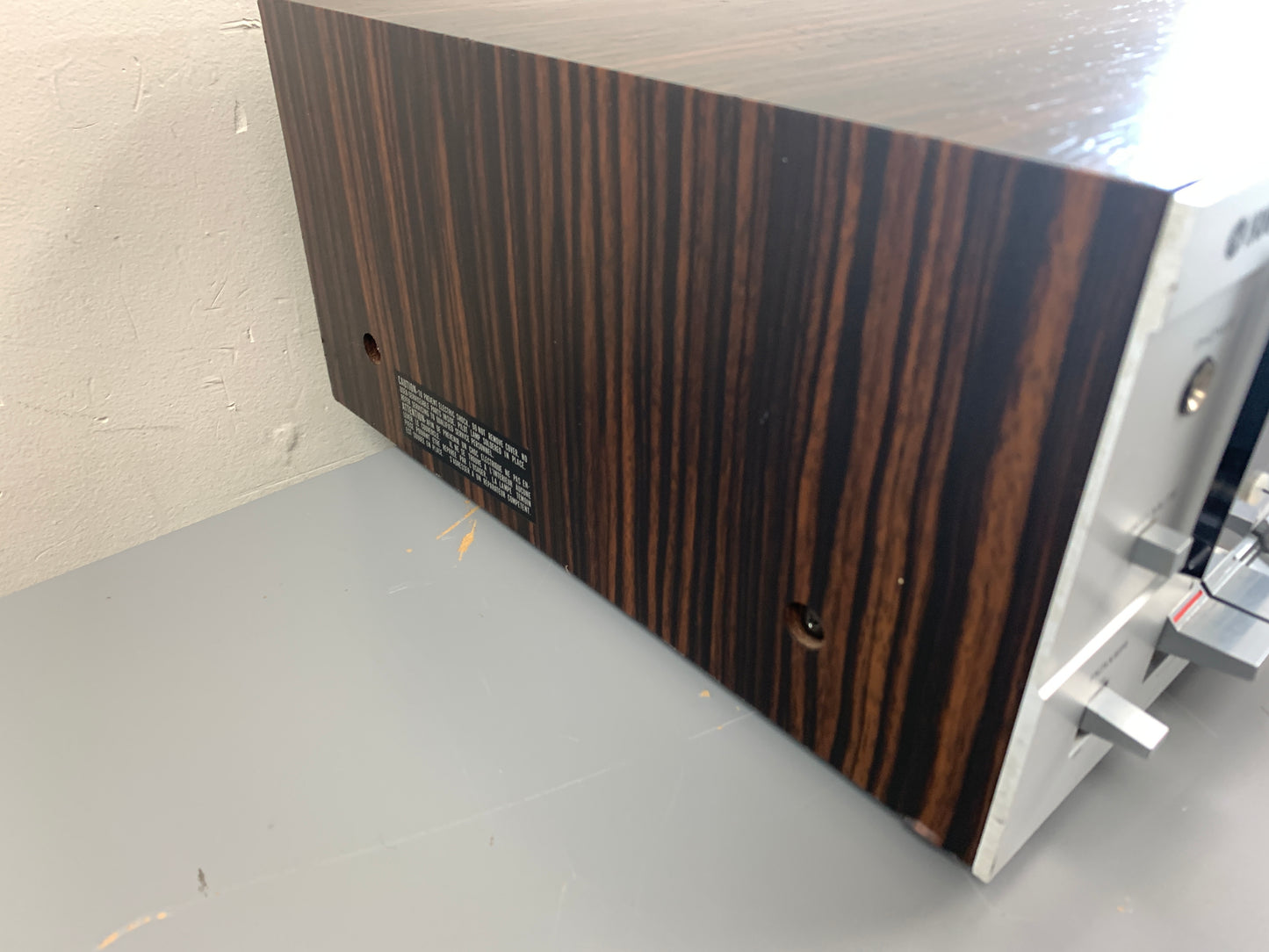 Refinishing the walnut cabinet can transform a unit. We do use real wood oil or Danish oil, not polyurethane. We clean the glass dial carefully; those silkscreened letters are fragile.