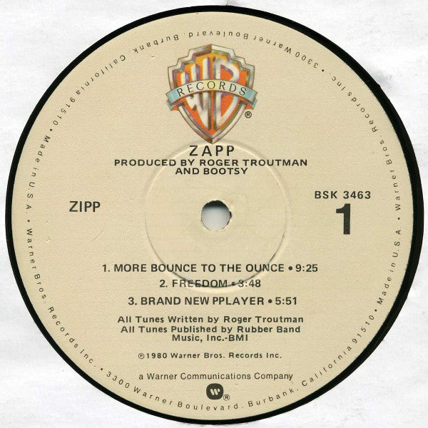 Recorded at United Sound Systems, Detroit, Michigan. Mastered at Allen Zentz Mastering, Los Angeles, California. All tunes published by Rubber Band Music, Inc.-BMI ℗ 1980 Warner Bros. Records Inc. © 1980 Warner Bros. Records Inc. Made in U.S.A. Sides indicated as Zipp 1 and Zapp 2.